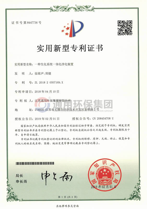 一种生化系统一体化净化装置实用新型专利