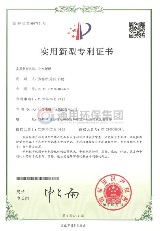 出水堰板实用新型专利