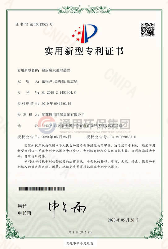 餐厨废水处理装置实用新型专利